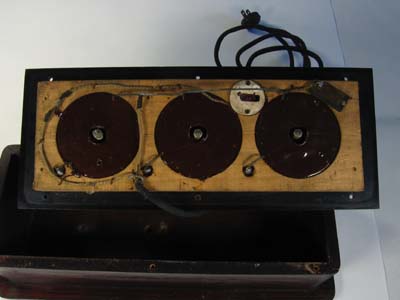 Underneath the construction is a bit different. All other Abrams equipment uses black pitch for covering up the back of the resistor controls, this one uses brown sealing wax. | ||||||||||